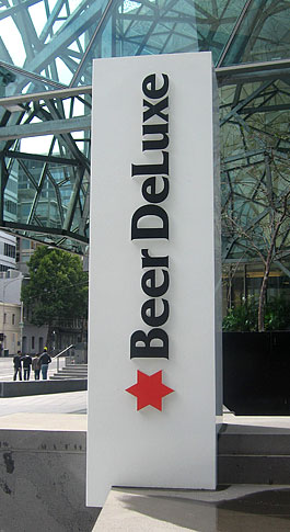 Beer Deluxe turned out to be a new, shiny, contrived-to-be-trendy beer bar that focused on Belgian imports. Although I love a good Belgian beer, I decided to focus on the brews I could only get in the land of Oz. I sampled a Matilda Bay Alpha Pale Ale, described as an “American style” pale ale. Meaning, of course, hoppy. Which it was (that is, compared to virtually all Australian brews; more on that later). But it was a decent pale ale, dark gold, with a big hop nose and sustained but not overwhelming bitterness, lending it a dry and bracing finish. One customer, an older chap, told the bartender: “It’s lovely.” Believe me, in an Australian accent it sounds even wussier than you’d think.