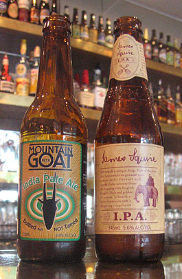 Also tried a James Squire IPA. (James Squire was an ex-convict who at the end of the 18th century became the first man able to grow hops in Australia. For this momentous achievement, the government awarded him a cow. Righteous bucks.) Although not nearly as hoppy as a good American IPA, the James Squire take had plenty of bitterness, Fuggle-like and earthy, with a small, biscuity malt profile to keep things dry.