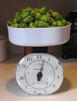 | 10 | ounces | fresh picked hops—hop back (or, in my case, a boring old collander) |