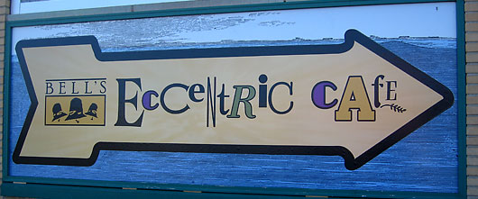 Kalamazoo is a city that was once a blue-collar powerhouse that hit hard times as the economy shifted, and is now going through a kind of renaissance. It’s not that big of a city (70,000) and is dominated by Western Michigan University, a surprisingly large college. Bell’s is no longer actually brewed in Kalamazoo, but a few miles down the road in Comstock. What is still in Kalamazoo is the Eccentric Cafe, the official Bell’s brew pub, a rehabbed depot station/warehouse sitting on Kalamazoo Avenue a few blocks off the revitalized downtown strip.